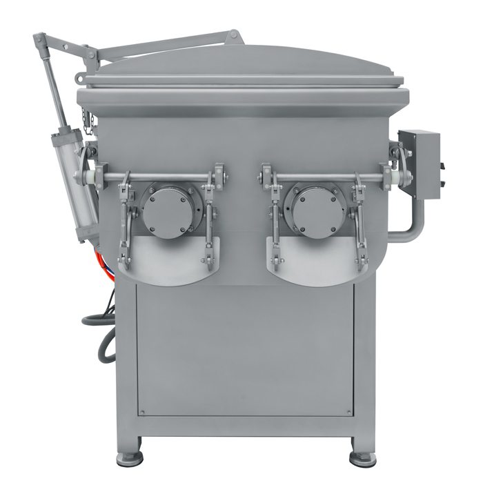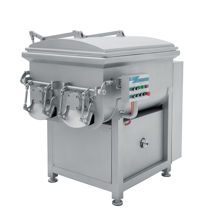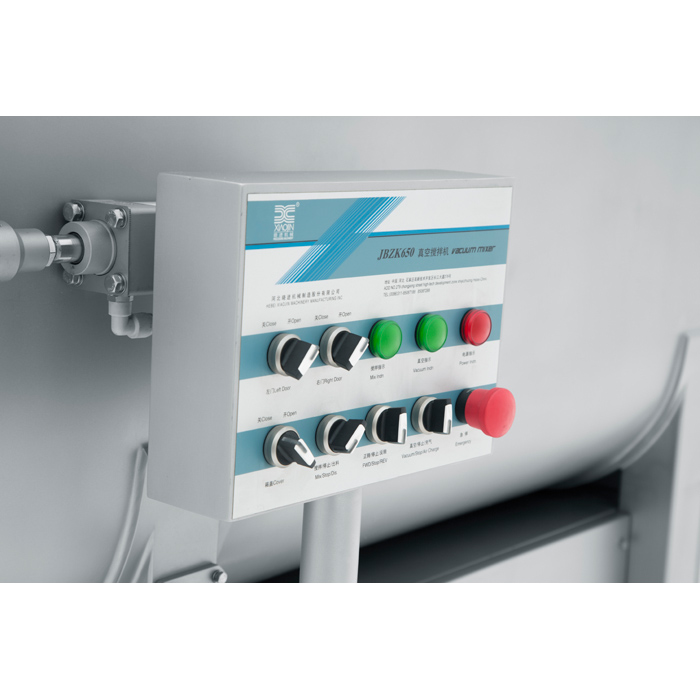 JBZK650真空攪拌機(jī),在真空的狀態(tài)下,物料被負(fù)壓后膨脹同時被槳葉進(jìn)行徑向翻滾、軸向回流,完成混合均勻的攪拌功能,達(dá)到理想的攪拌效果,同時采用獨(dú)特的攪拌器,使拌出的肉餡纖維細(xì)化,并使肉纖維間的動物蛋白能游離析出,以保證肉餡拌和均勻并使之呈現(xiàn)蓬松狀態(tài),加入的調(diào)味汁液能充分吸收飽和,以保持餡料的松、鮮、嫩、口感味道優(yōu)異的特點(diǎn)。是肉類生產(chǎn)中常用的設(shè)備之一,同時也是各類速凍水餃、包子、混沌等面食加工廠的理想設(shè)備。