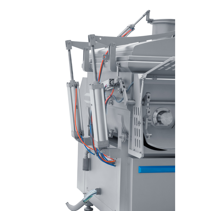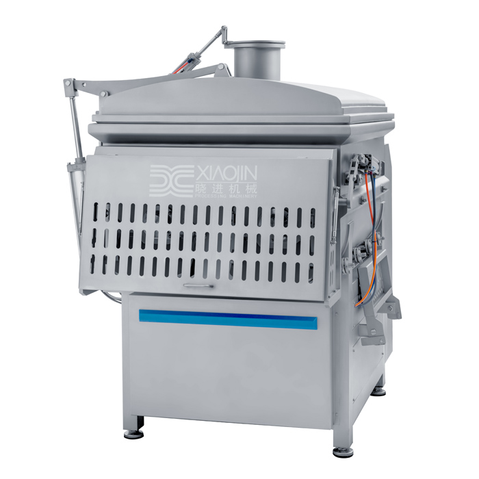 JBZL750真空制冷攪拌機(jī),是在原真空攪拌機(jī)的基礎(chǔ)上引進(jìn)國(guó)際技術(shù)水平而改進(jìn)的新型攪拌機(jī)。在真空的狀態(tài)下,物料被負(fù)壓后膨脹同時(shí)被槳葉進(jìn)行徑向翻滾、軸向回流,完成混合均勻的攪拌功能,達(dá)到理想的攪拌效果,同時(shí)采用獨(dú)特的攪拌器,使拌出的肉餡纖維細(xì)化,并使肉纖維間的動(dòng)物蛋白能游離析出,以保證肉餡拌和均勻并使之呈現(xiàn)蓬松狀態(tài),加入的調(diào)味汁液能充分吸收飽和,以保持餡料的松、鮮、嫩、口感味道優(yōu)異的特點(diǎn)。是肉類生產(chǎn)中常用的設(shè)備之一,同時(shí)也是各類速凍水餃、包子、混沌等面食加工廠的理想設(shè)備。