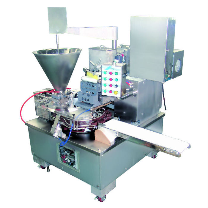 特點(diǎn):此機(jī)可連續(xù)性進(jìn)行生產(chǎn),包餃子的全過程模仿人工包餃子的原理,適用于大顆粒餡料的包制。每只水餃的重量為20g和17g,可選其中一種,此機(jī)自動(dòng)化程度非常高,整機(jī)只需2KW就可滿足生產(chǎn)需求。