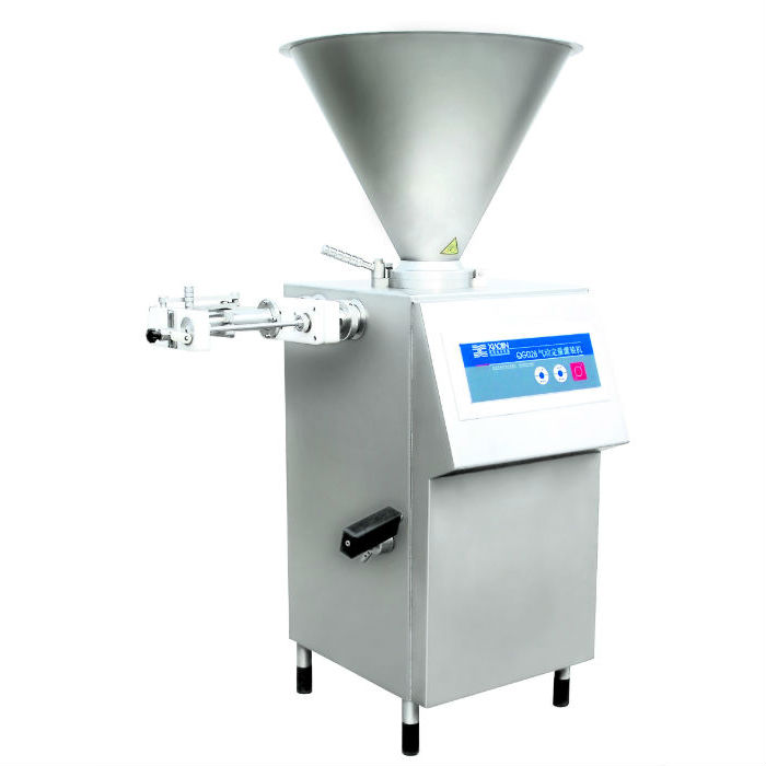 氣動(dòng)灌裝機(jī)可灌裝肉塊、肉糜產(chǎn)品,灌裝速度可調(diào),30-40time/min。