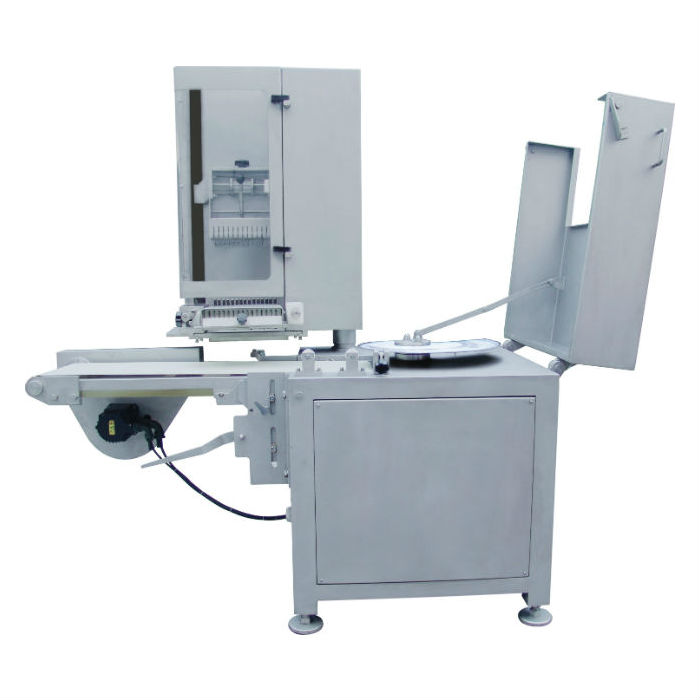 QP7470切片分份機(jī),具有高速切割、分份功能,可以在5-10℃、結(jié)露的環(huán)境連續(xù)工作,將-2℃至-10℃的叉燒肉和原料肉切成需要的片狀。較好的解決了以前單靠人工分切,切割速度慢、分份不均勻,產(chǎn)能低下,既耗費(fèi)工時,又無法實(shí)現(xiàn)規(guī)?;a(chǎn)的難題,大地降低生產(chǎn)成本、提高生產(chǎn)效益!