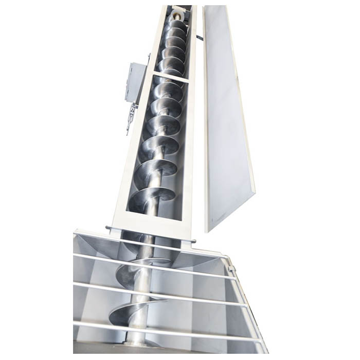 將物料螺旋輸送到一定高度后,螺旋至設(shè)備的料斗中, 以完成加料工作。